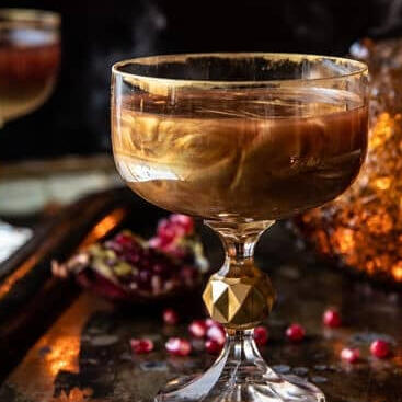 Cold Press Coffee, amaretto, bourbon and edible gold shimmer. Warm, rich, and nutty with a slight sweetness, this potent drink is like imbibing the blood of a forgotten god. Don't let the power go to your head.