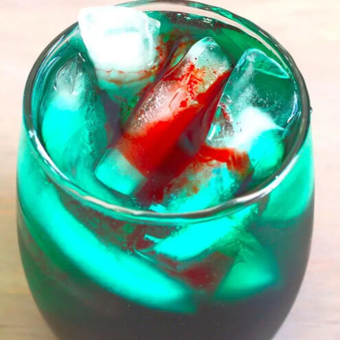 Flavored vodkas and sparkling water with matching color sugar crystals on the rim and a sugar crystal stirrer, should you wish to make this already sweet drink even sweeter. Flavors and colors include: Green apple and pear, berry, grape, watermelon and strawberry, lemon, and tangerine. When life needs to be brighter! One of our strongest drinks.